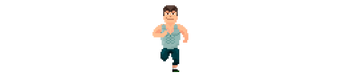 The animation and frames of a muscular pixel art character running in front view